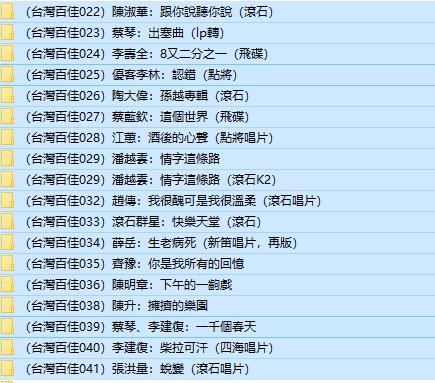 軟體名稱: 台灣百佳 台灣流行音樂 陳淑華+蔡琴+李壽全+優客李林+陶大偉+蔡藍欽+江蕙+趙傳+滾石群星+薛岳+齊豫+陳明章+陳升+蔡琴、李建復+張洪量 (18CD合成1片DVD) 無損音樂 DVD版