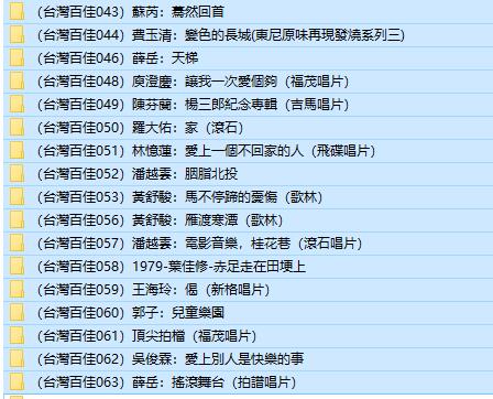 軟體名稱: 台灣百佳 台灣流行音樂 蘇芮+費玉清+薛岳+庾澄慶+陳芬蘭+羅大佑+林憶蓮+潘越雲+黃舒駿+黃舒駿+葉佳修+王海玲+郭子+頂尖拍檔+吳俊霖+薛岳 (17CD合成1片DVD) 無損音樂 DVD版