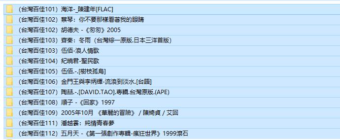 軟體名稱: 台灣百佳 台灣流行音樂 陳建年+蔡琴+胡德夫+齊秦+伍佰+紀曉君+金門王與李炳輝+陶喆+順子+陳綺貞+潘越雲+五月天 (13CD合成1片DVD) 無損音樂 DVD版